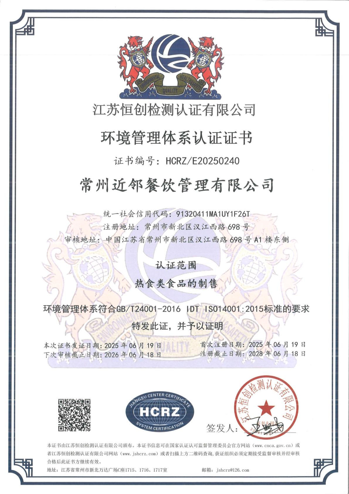 • 环境管理体系认证证书中文